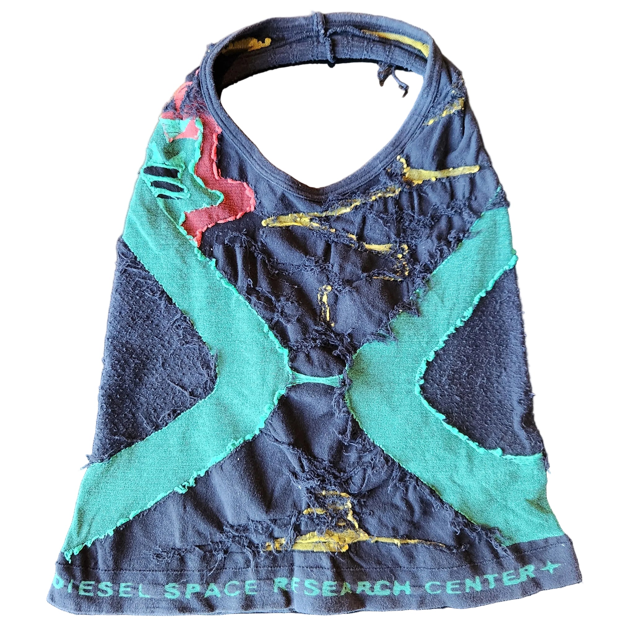 This Diesal top was made in Italy and is made up of the classic RGB colors. The patchwork and fit of the top is what makes it so special.