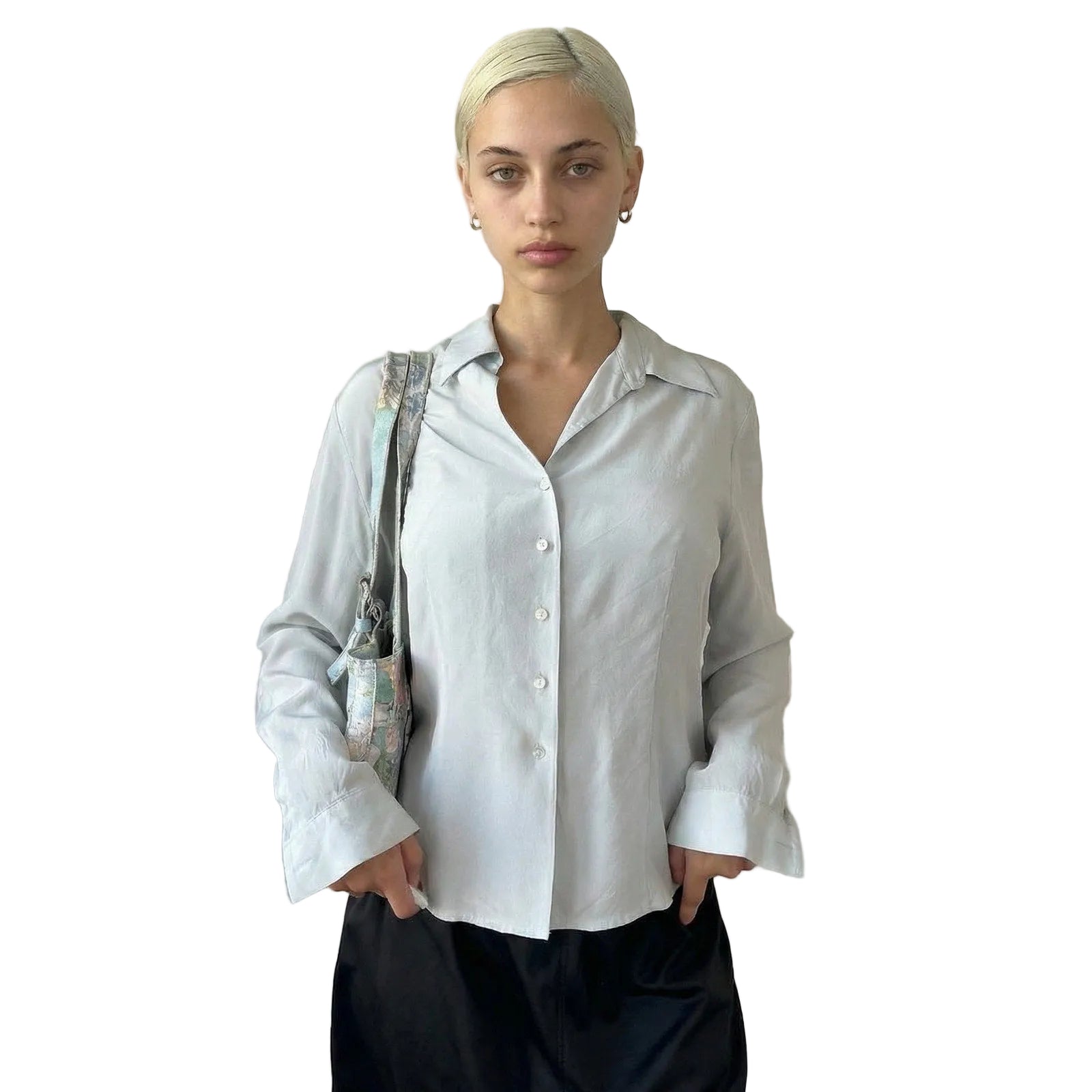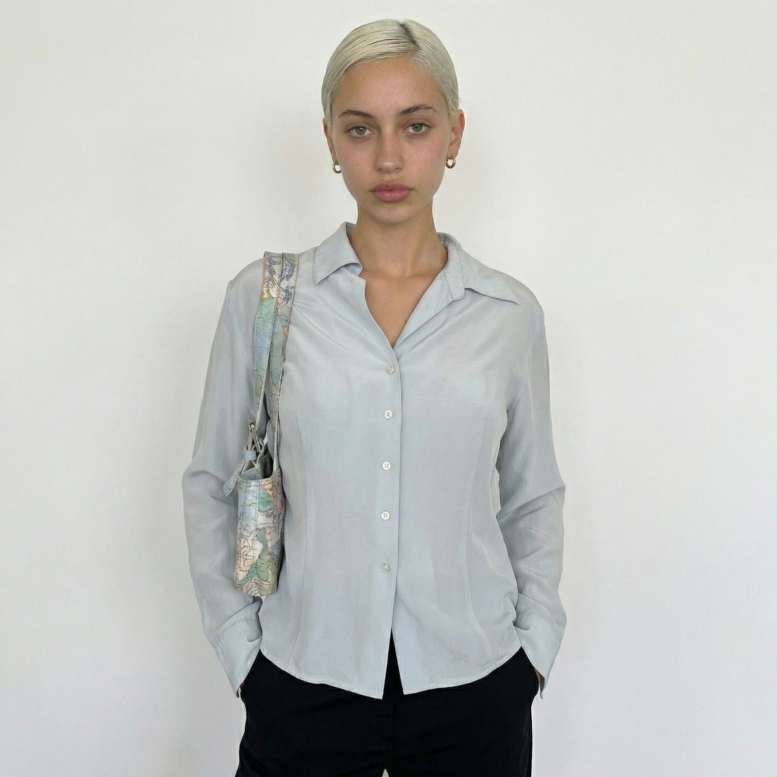 Vintage 90s Pastel Blue Silk Blouse (S)