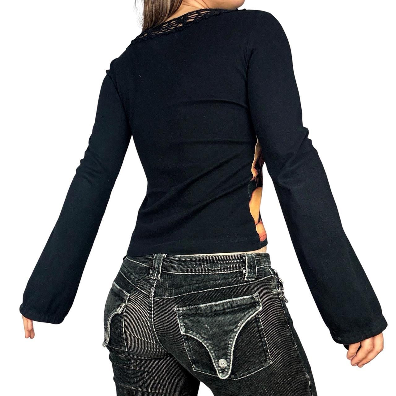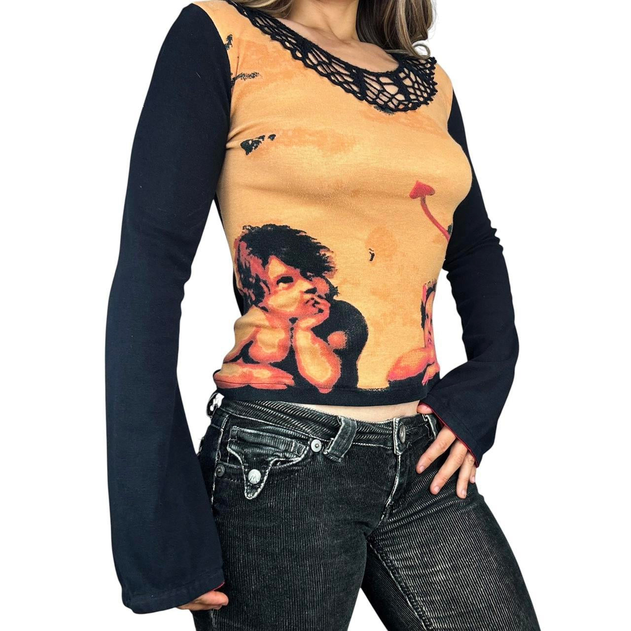Stunning vintage long sleeve with an insane angel & devil renaissance print, by “Paramita”.