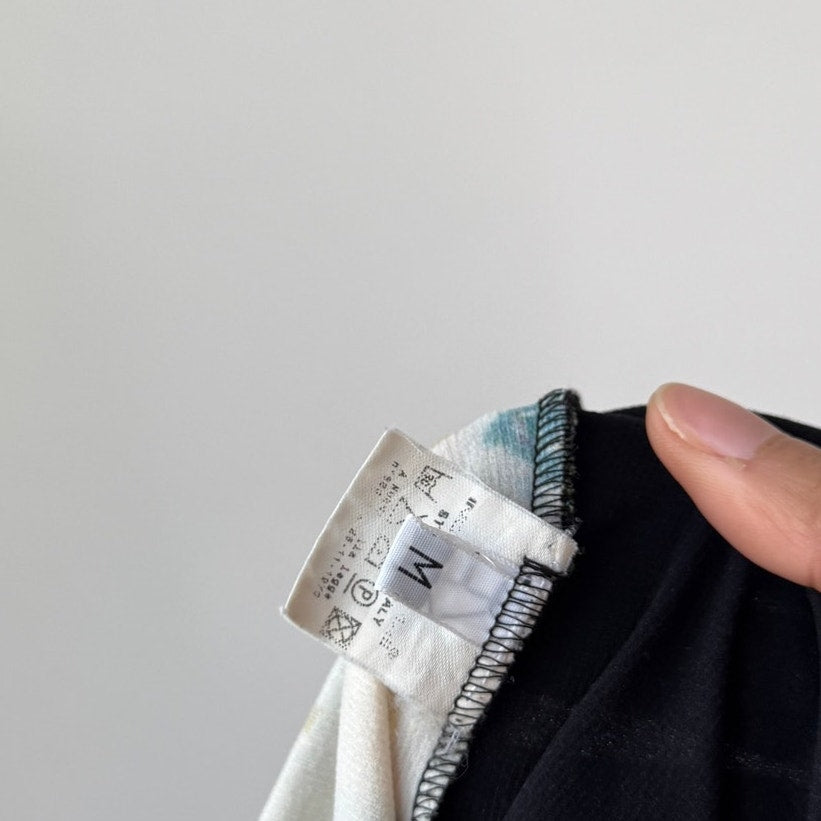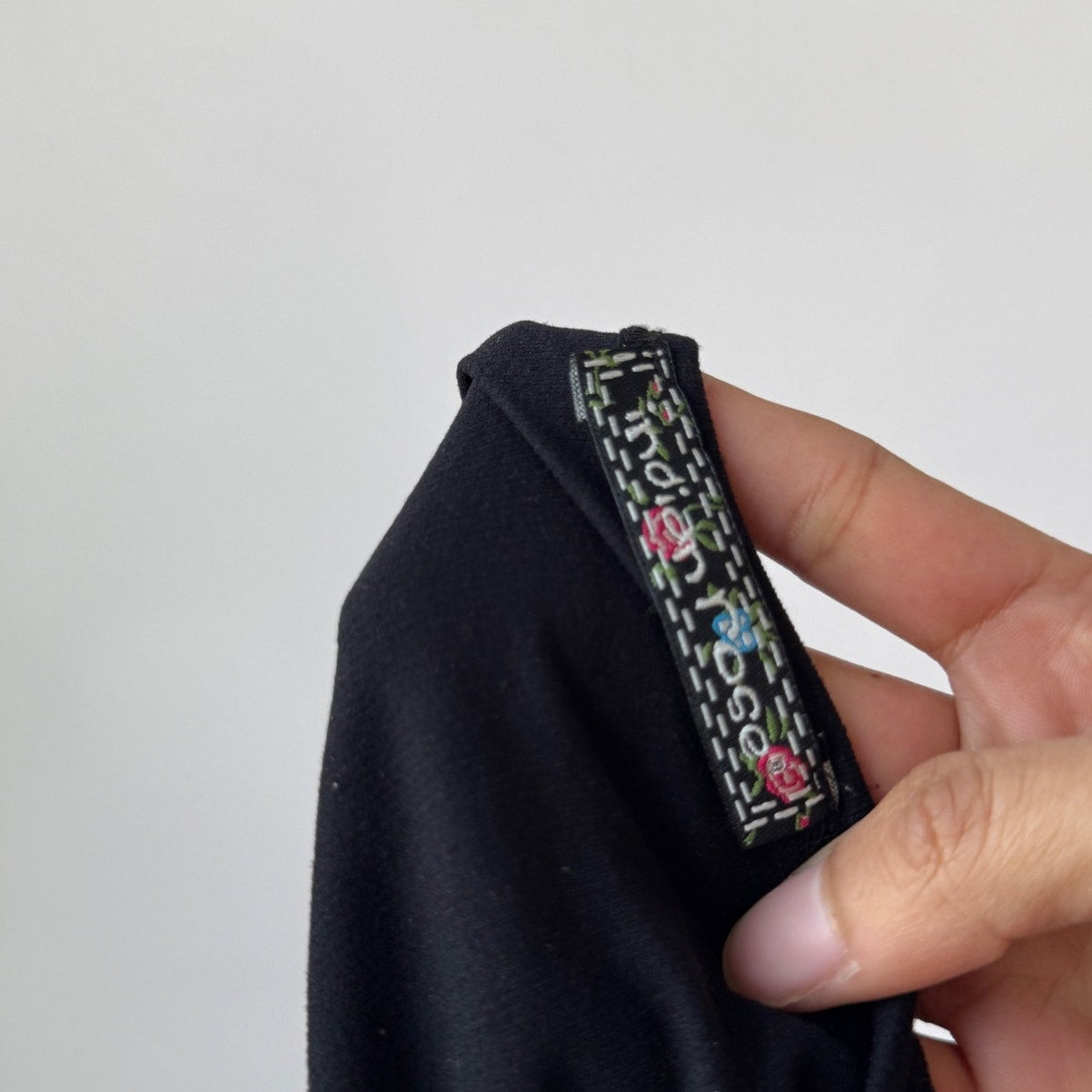 - Contrast black mesh long sleeves with bell cuffs, lettuce hem
