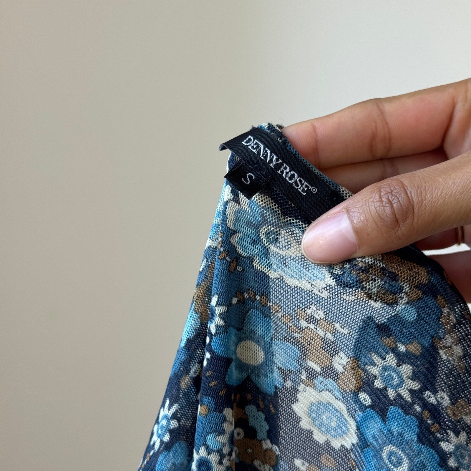 Denny Rose Blue Floral Mesh Ruffle Top (XS/S)