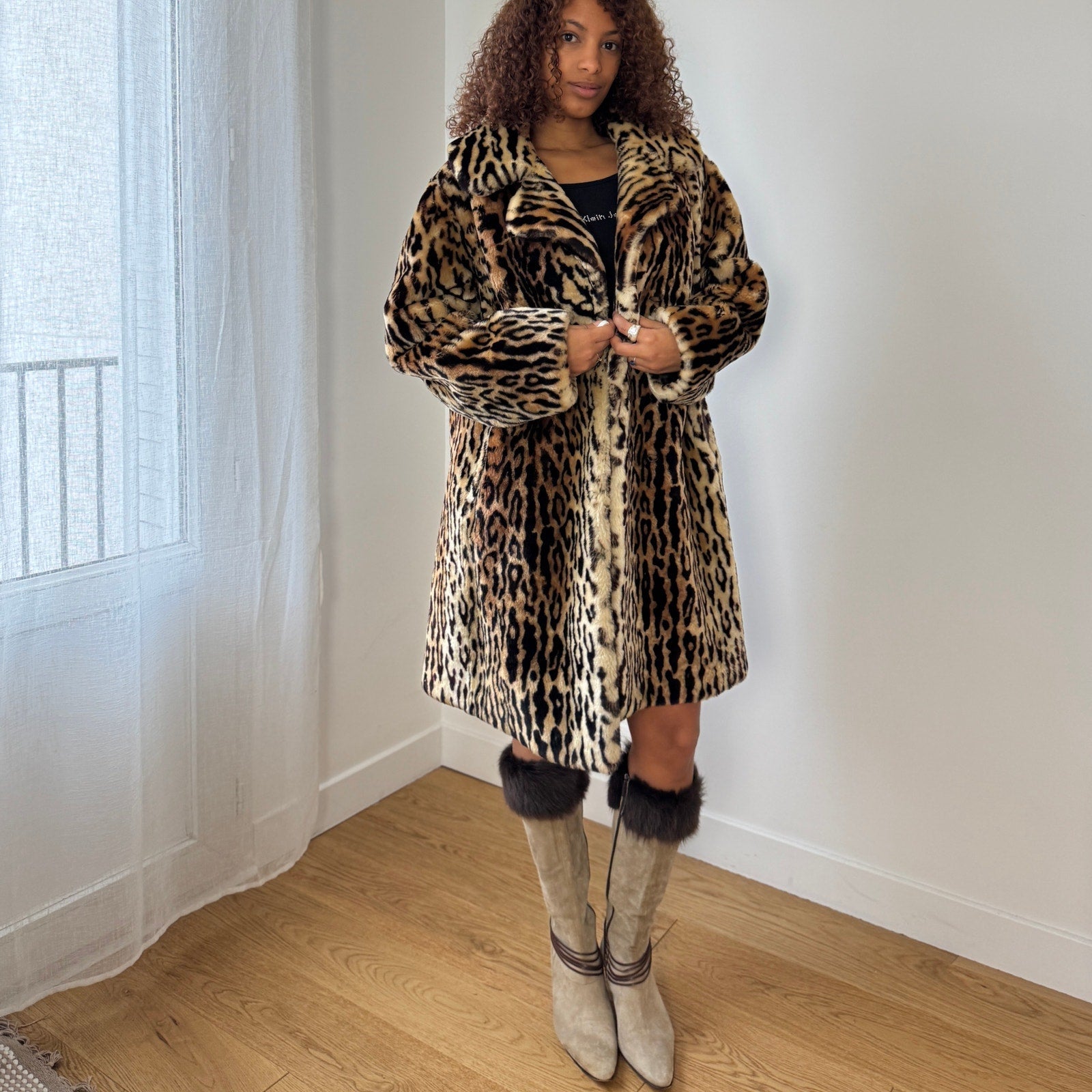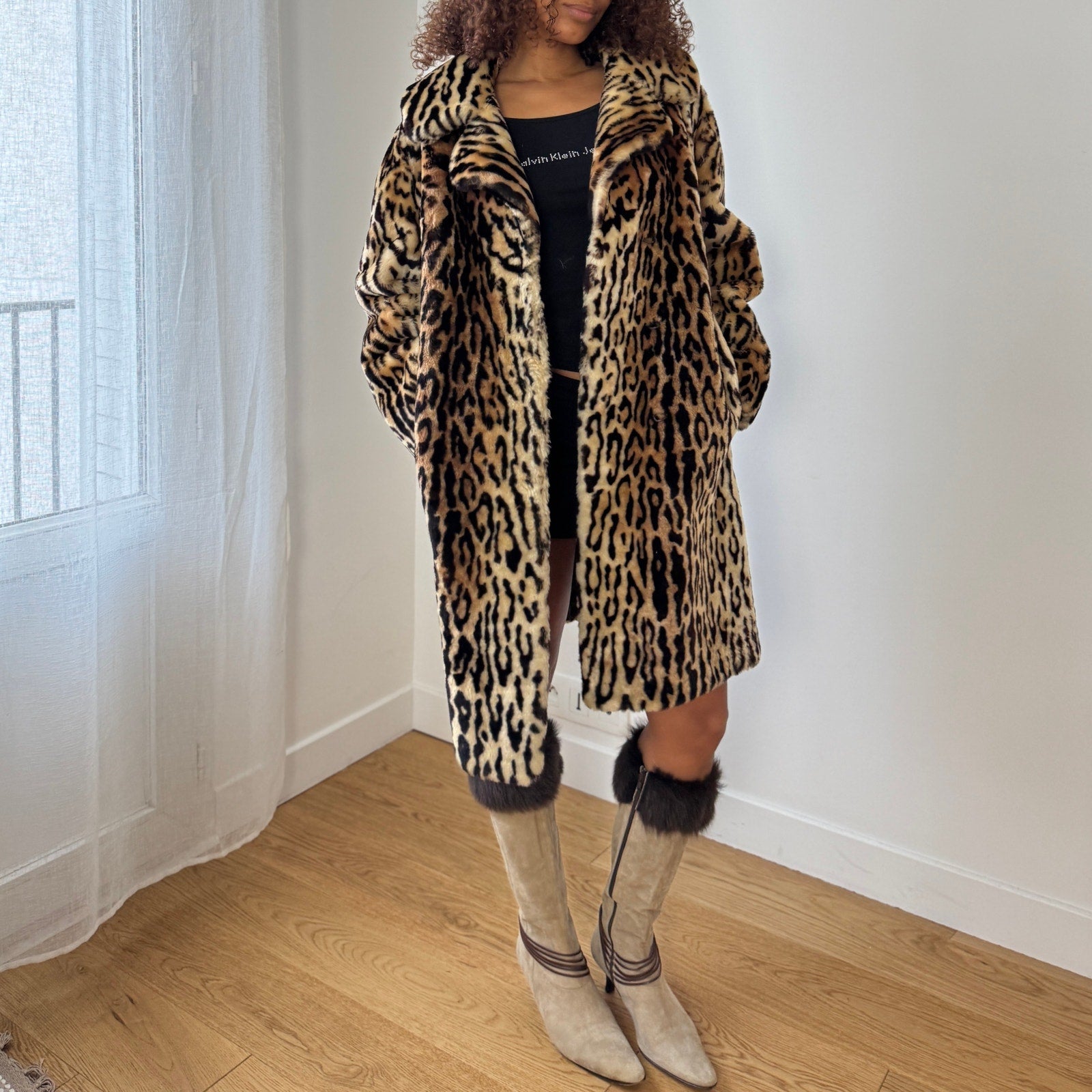 Vintage Cheetah Print Faux Fur Coat (One size)