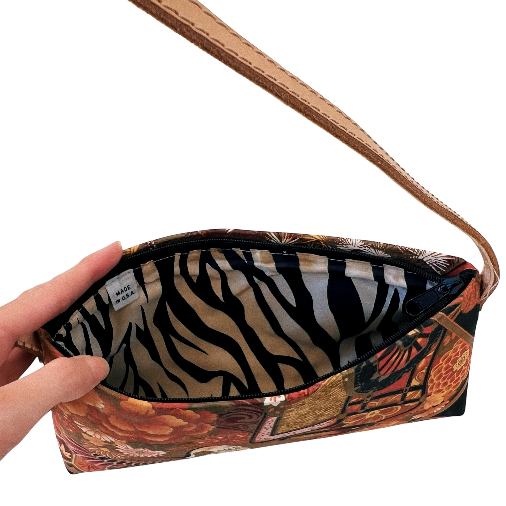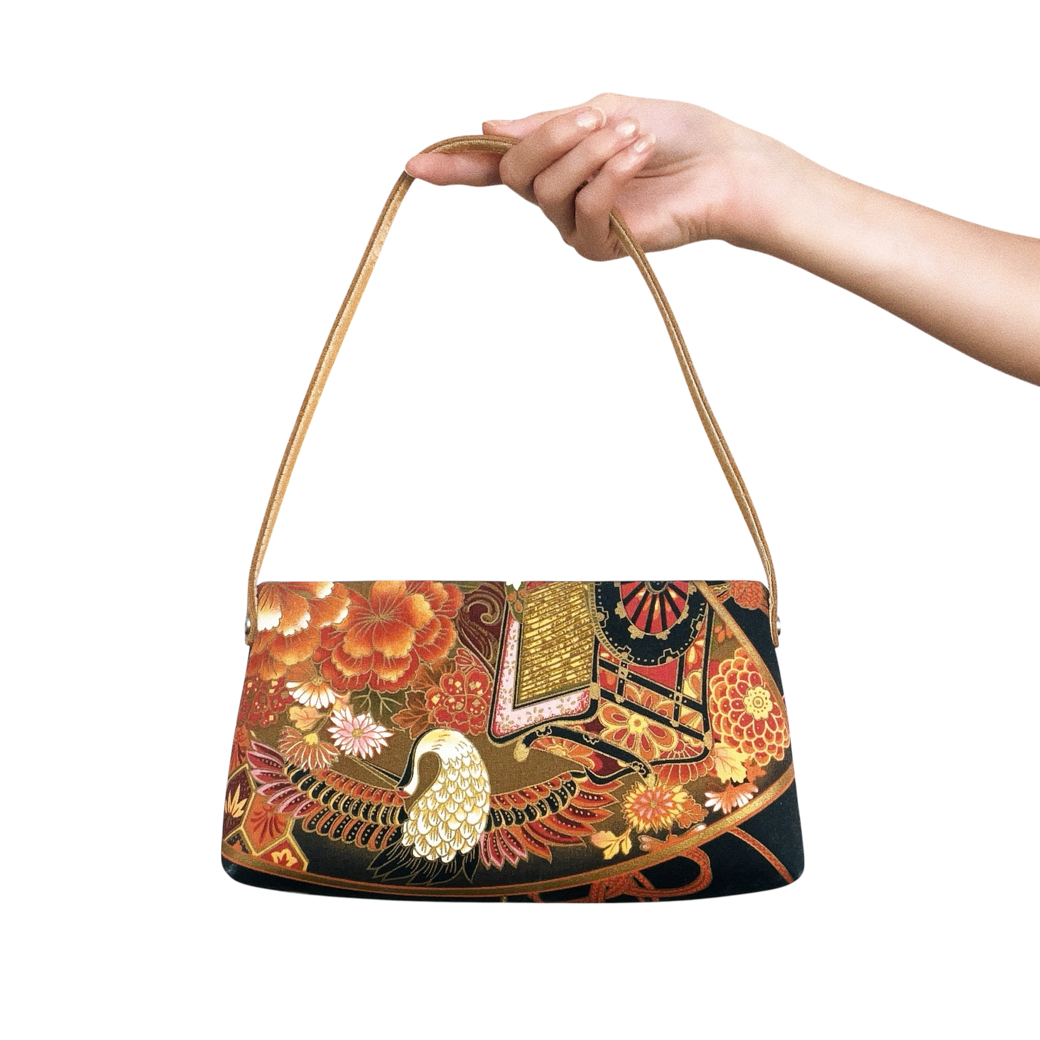Super cute vintage mini purse featuring an Asian-inspired floral design with storks!