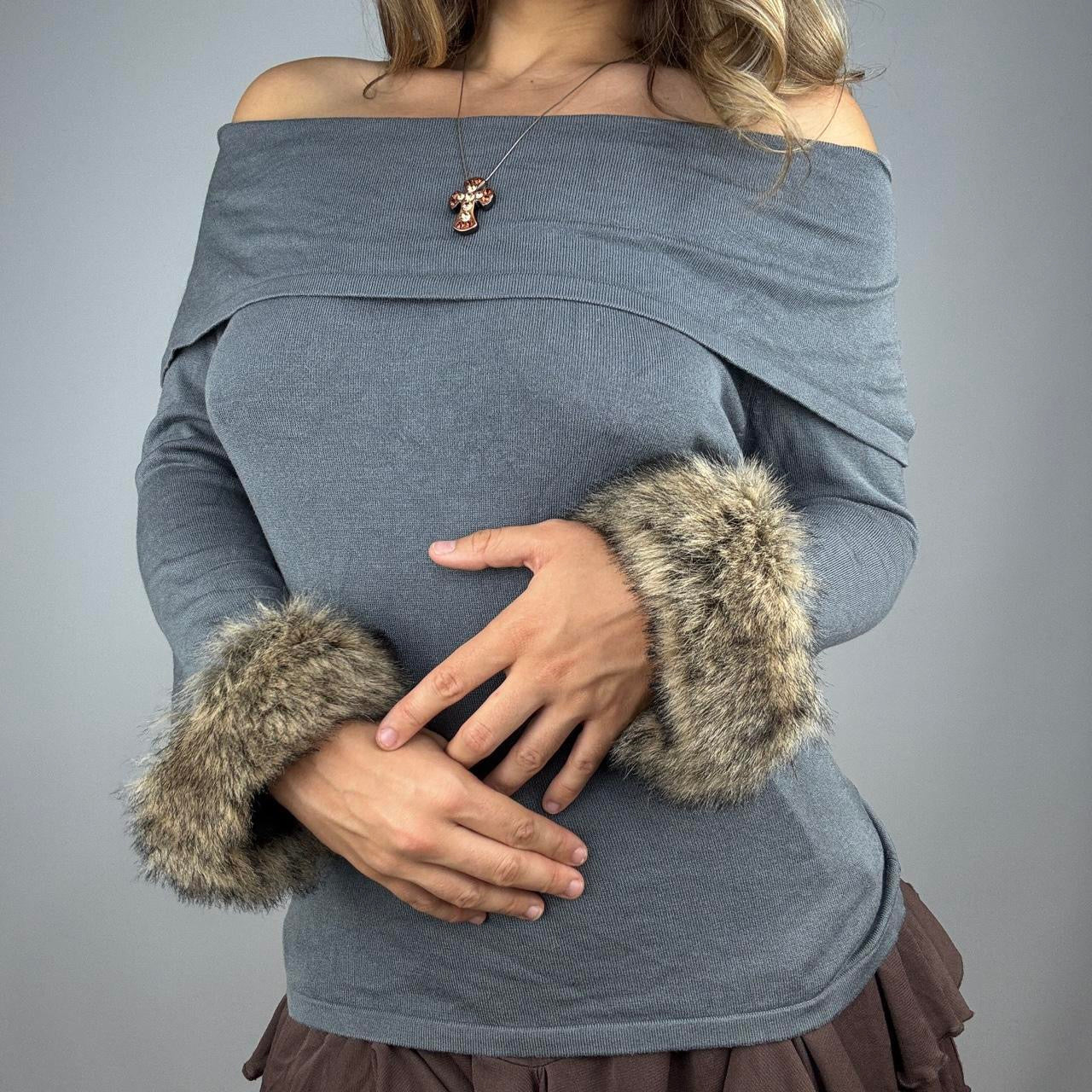 Soft & stretchy grey knit long sleeve with dramatic faux fur cuffs. Vintage from the early 2000s. Excellent condition.