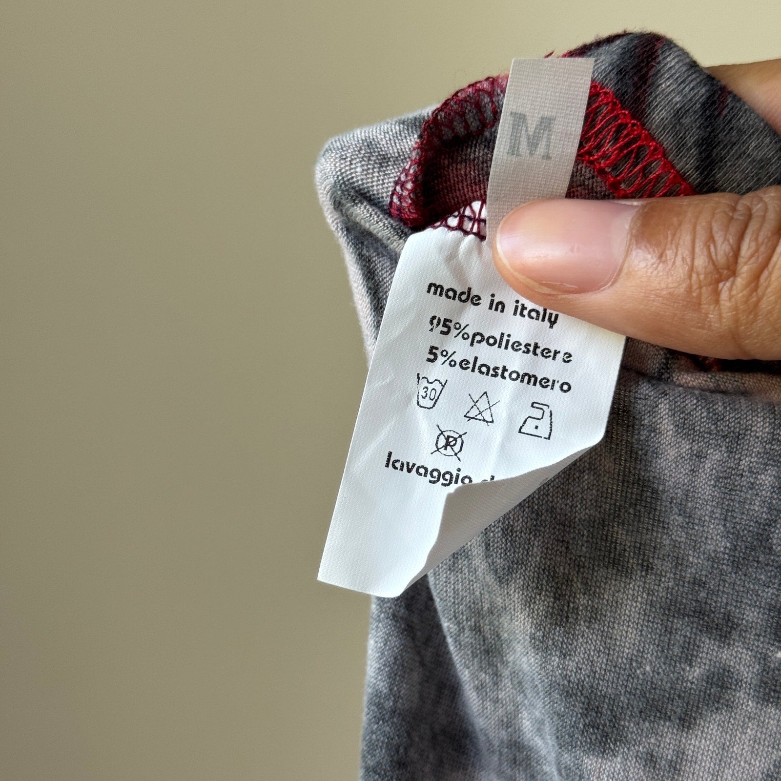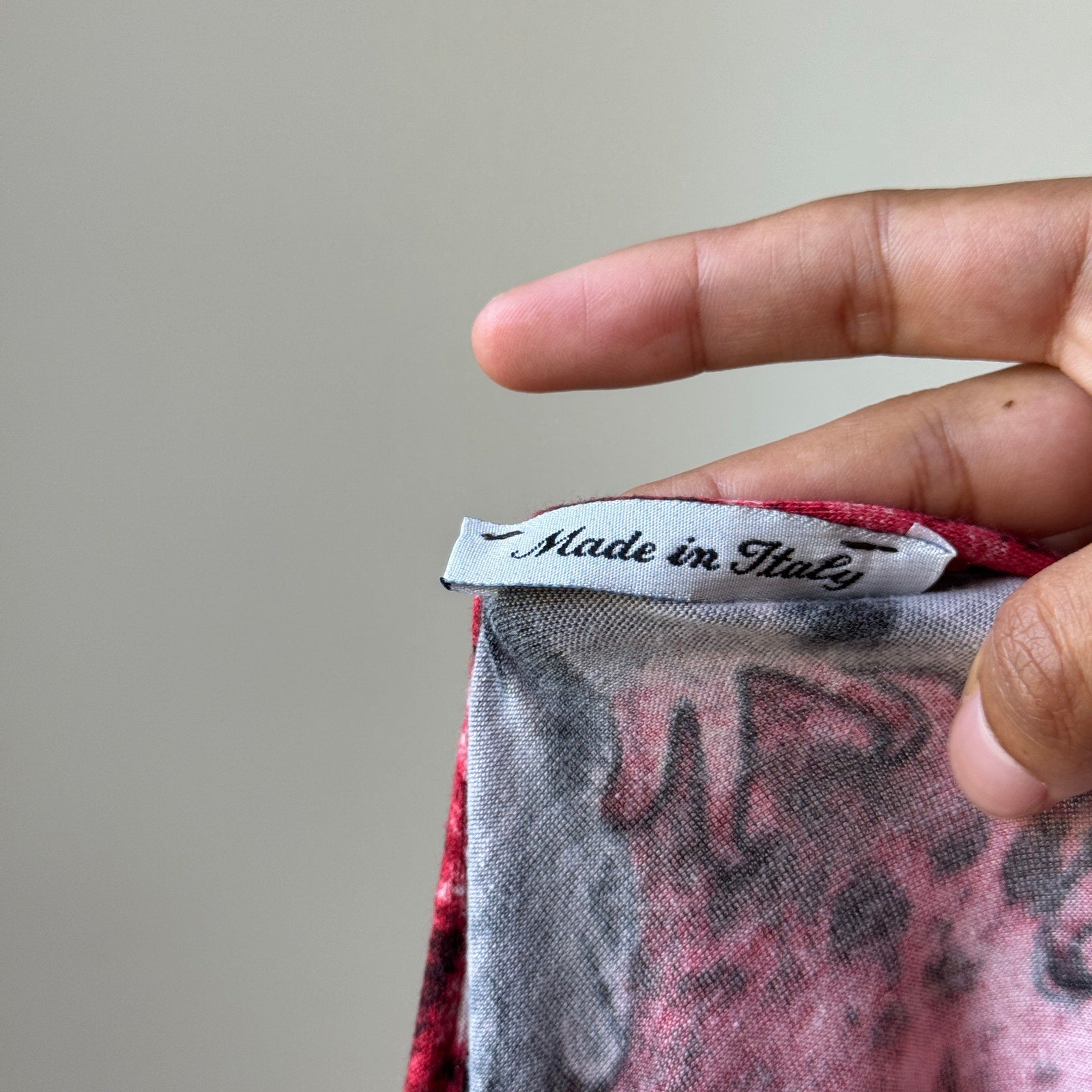 - Bold red cheetah print layered with soaring eagle graphics in grey and black