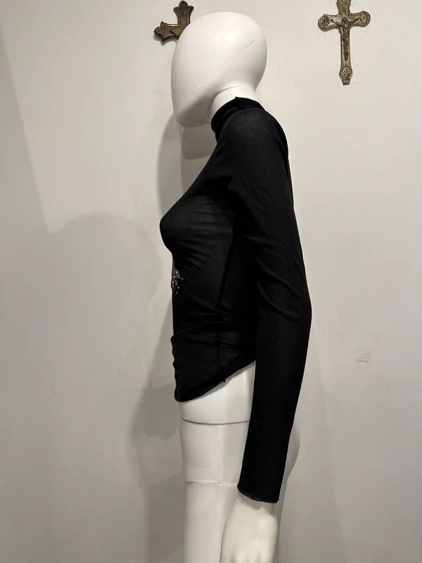 Vintage Italian Graphic Print Motif Mesh Longsleeve (XS/S)