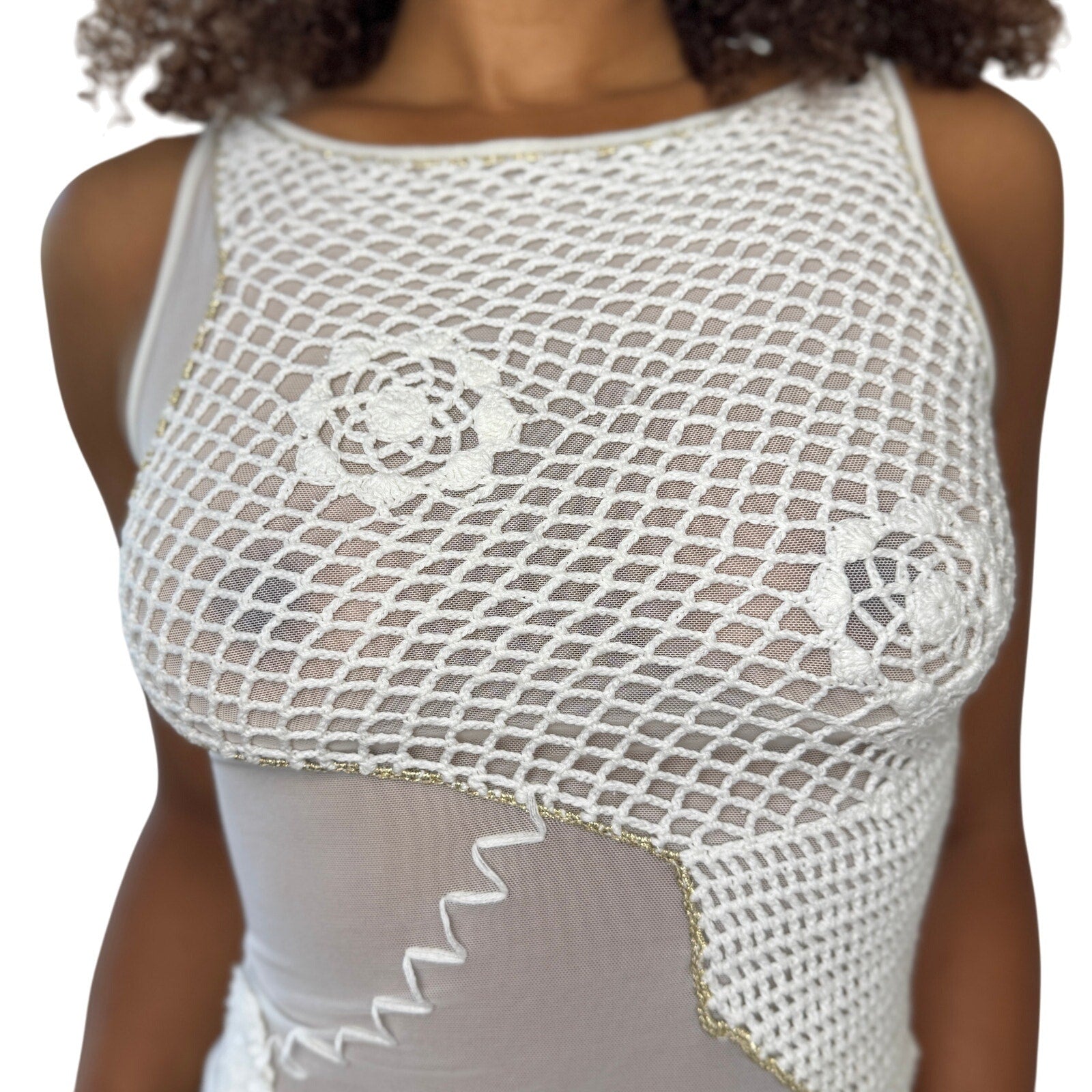 Vintage Italian Mesh & Crochet Patchwork Tank (XS/S)