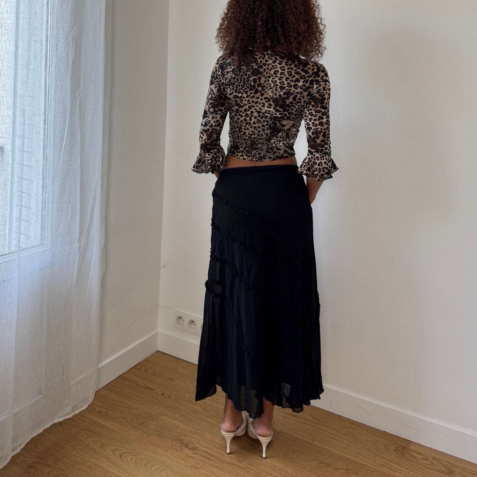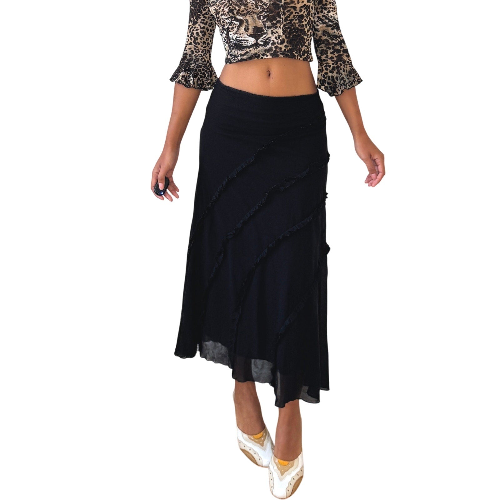 Jacqueline Riu Black Mesh Midi Skirt (S)
