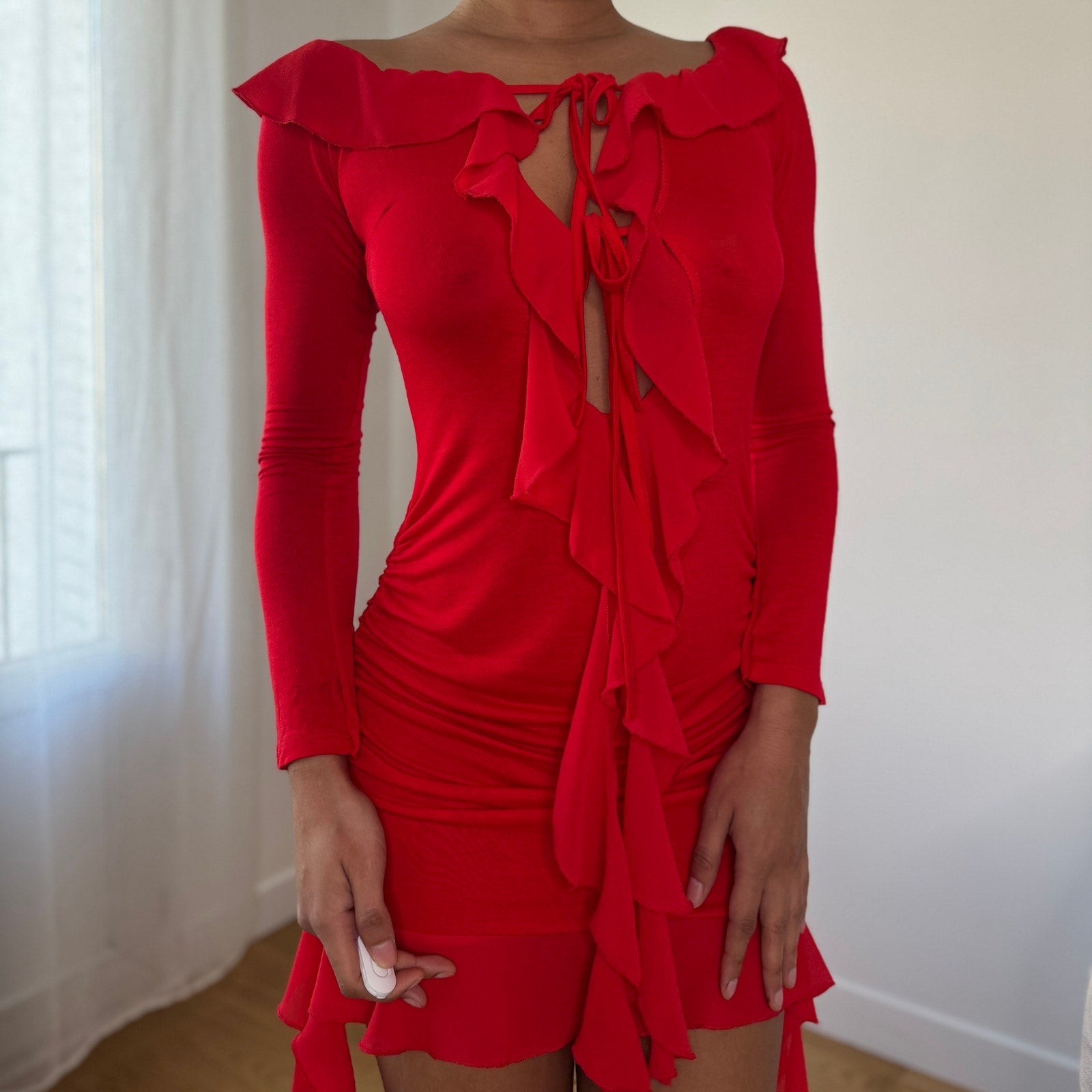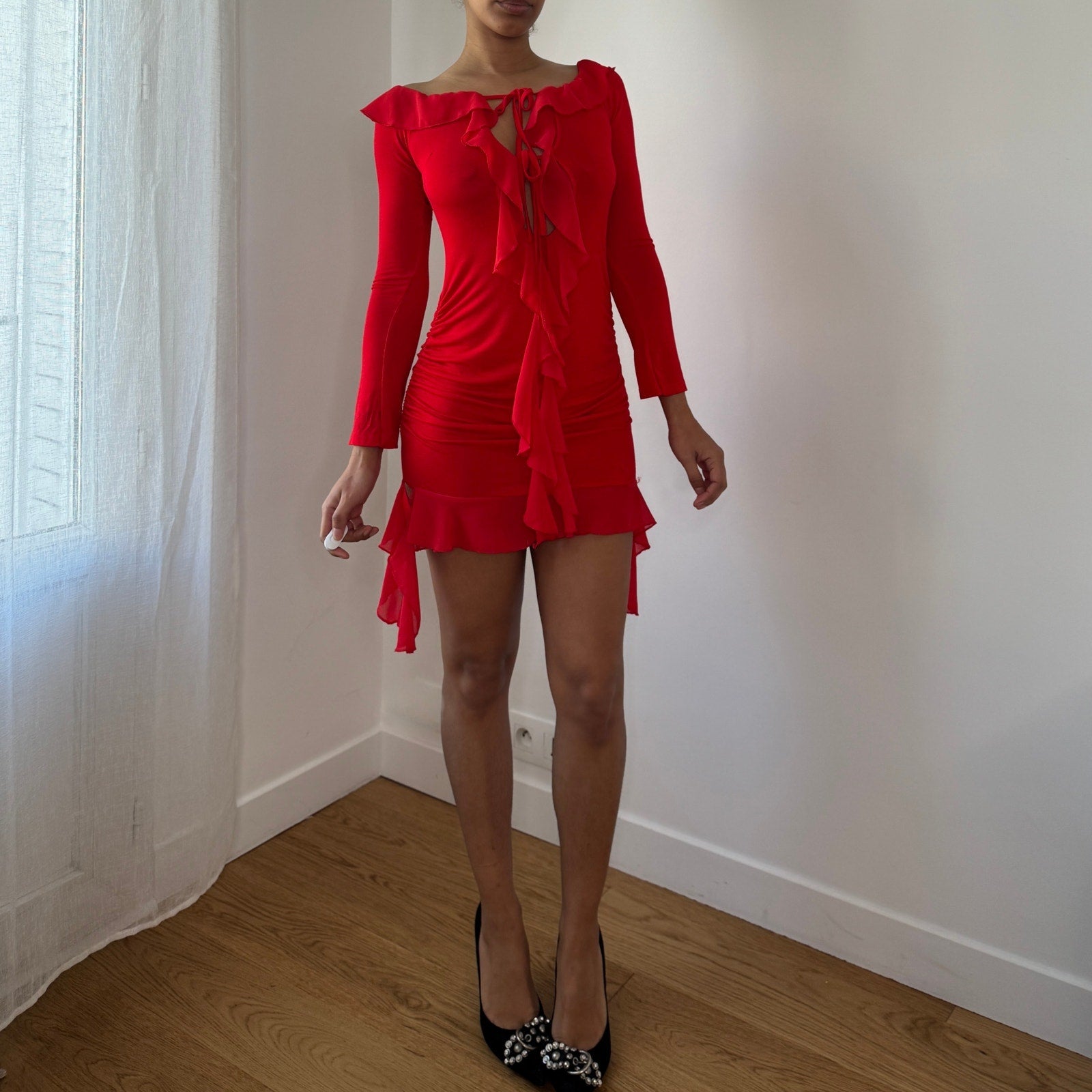 Vintage Italian Red Ruffle Mini Dress (S)