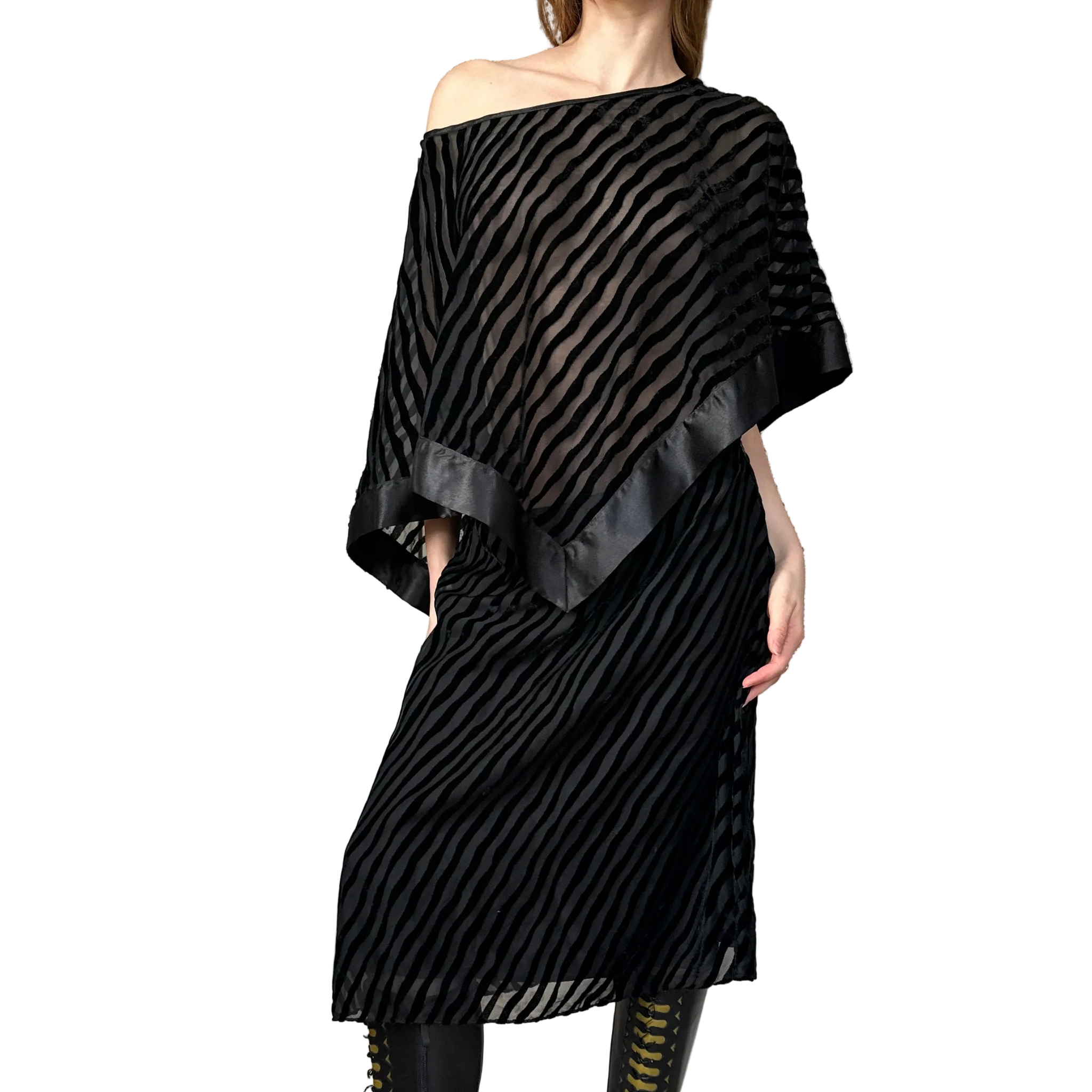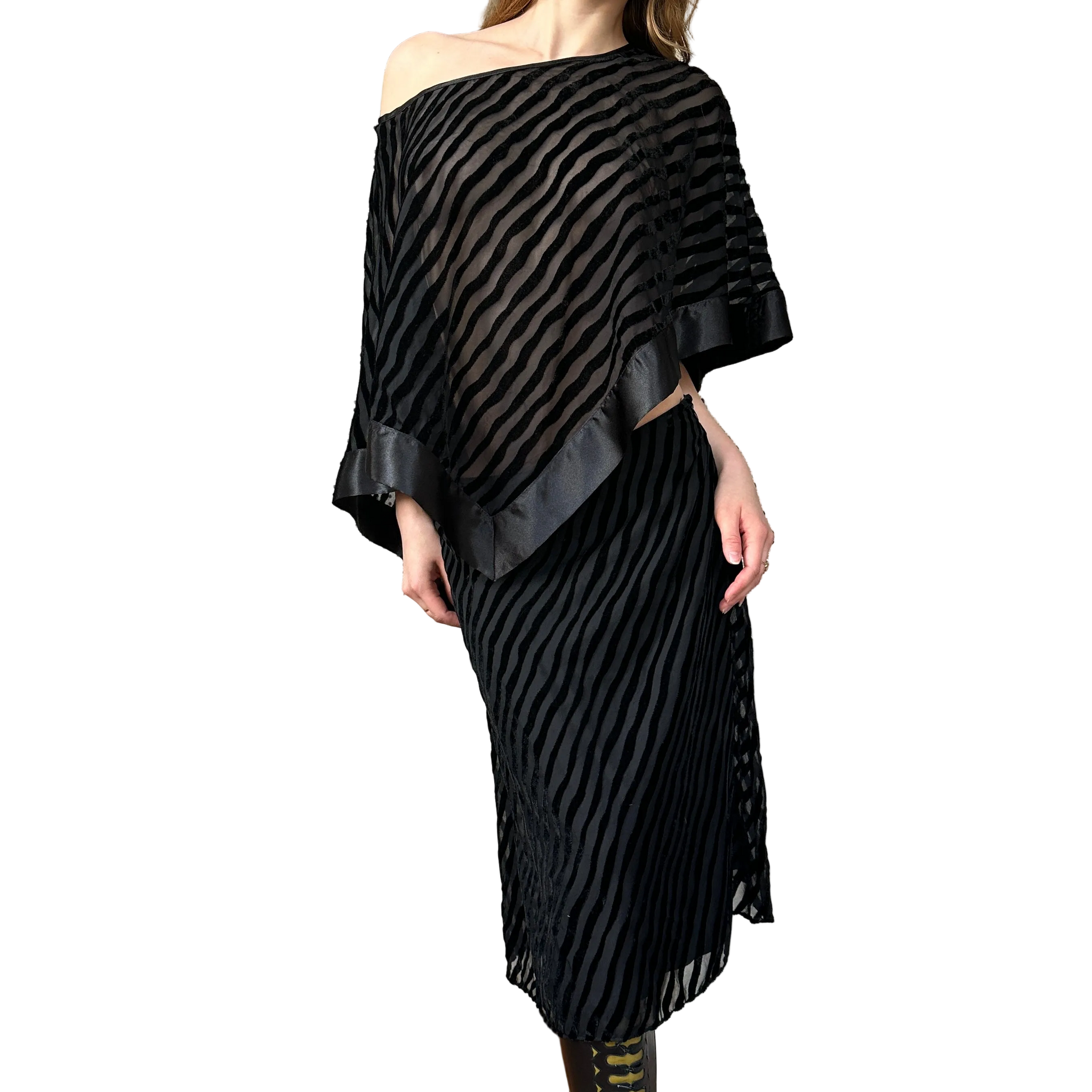 Vintage Striped Silk Poncho & Skirt Set (M)