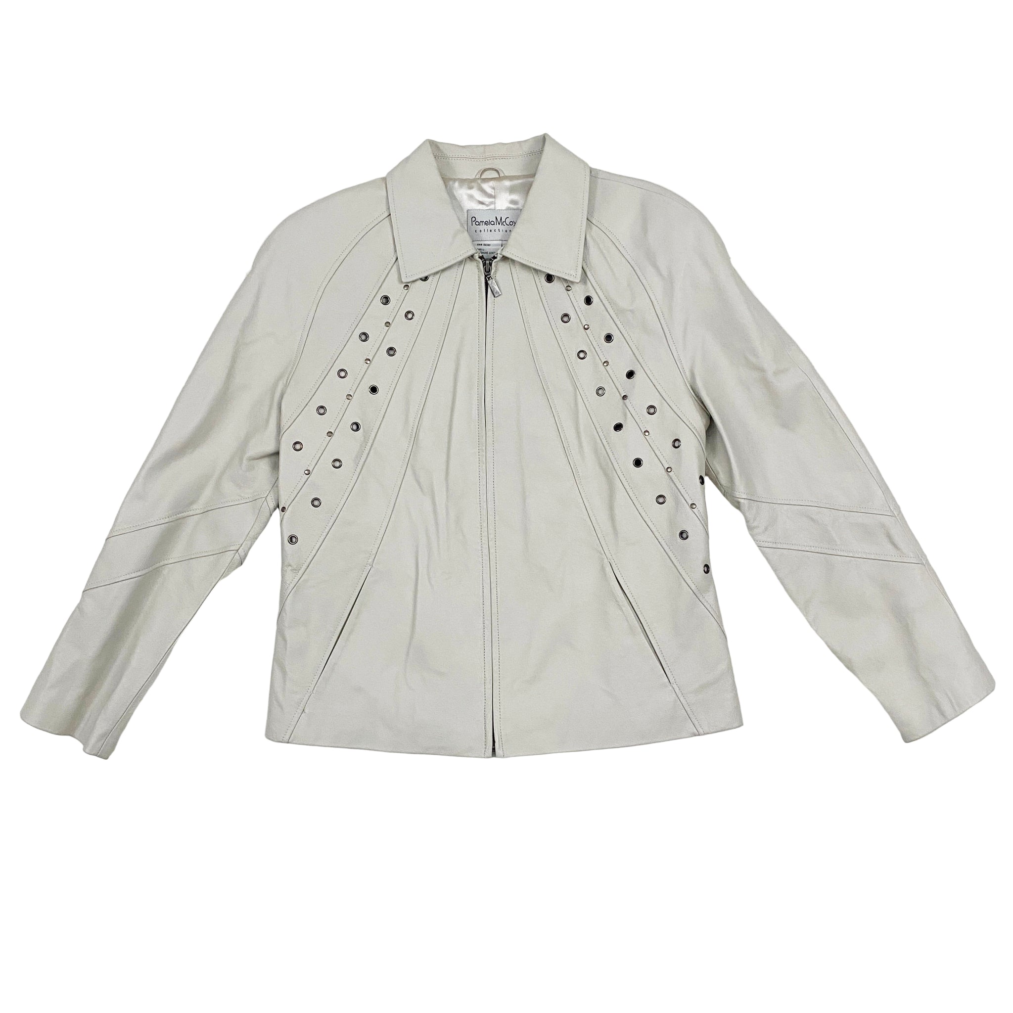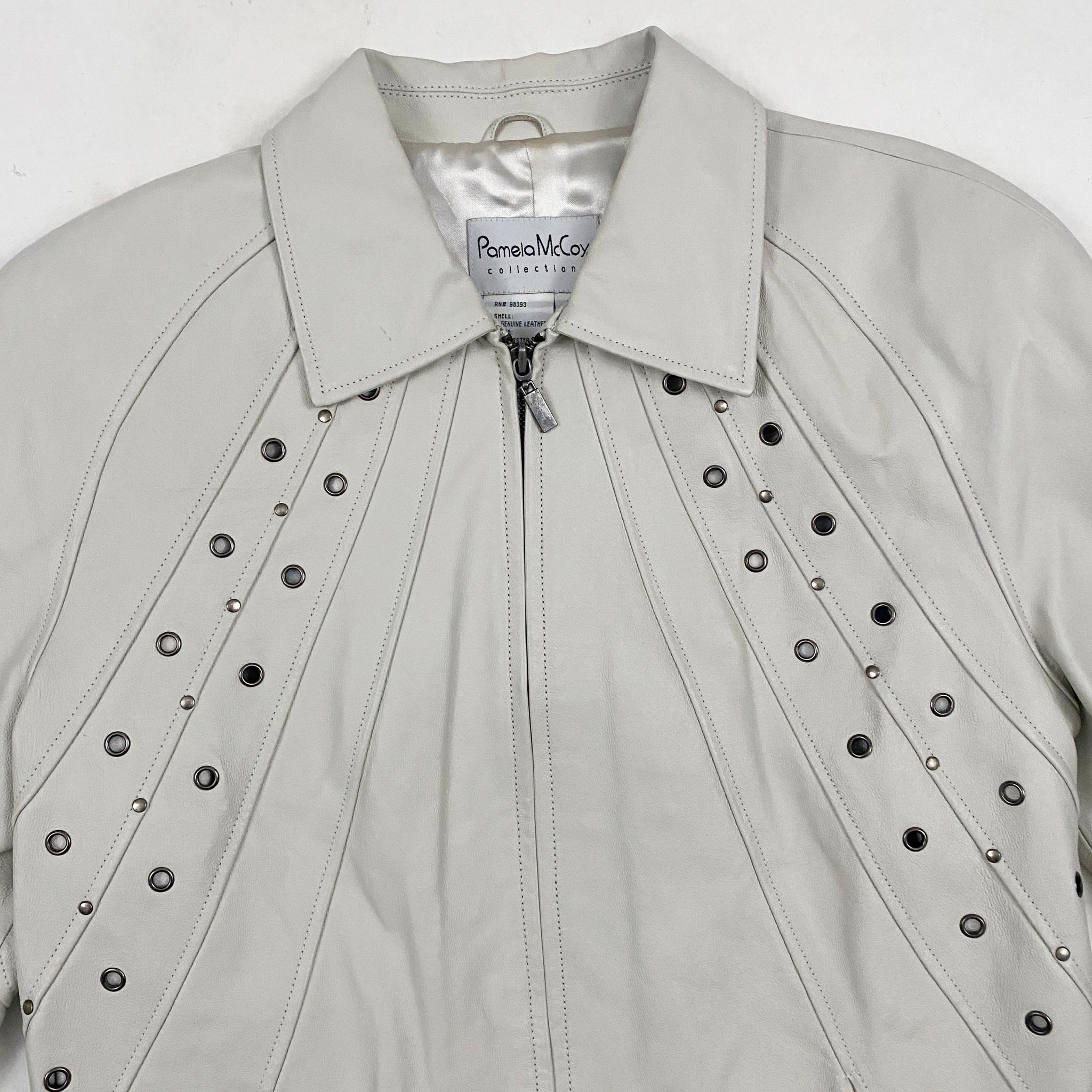 White Studded Leather Jacket (M)
