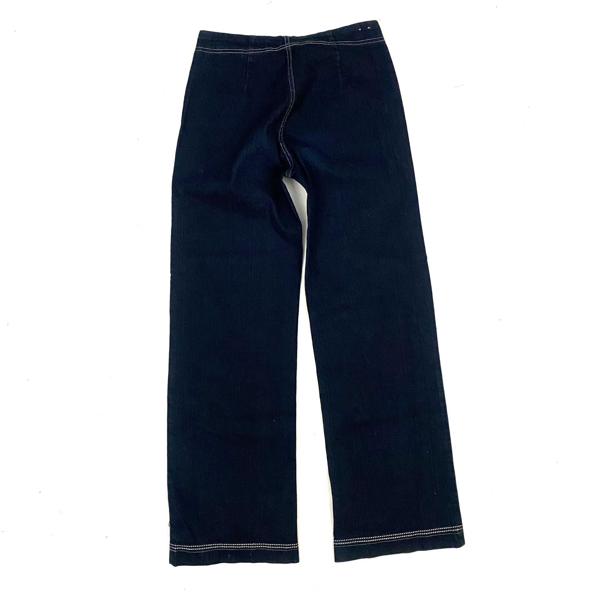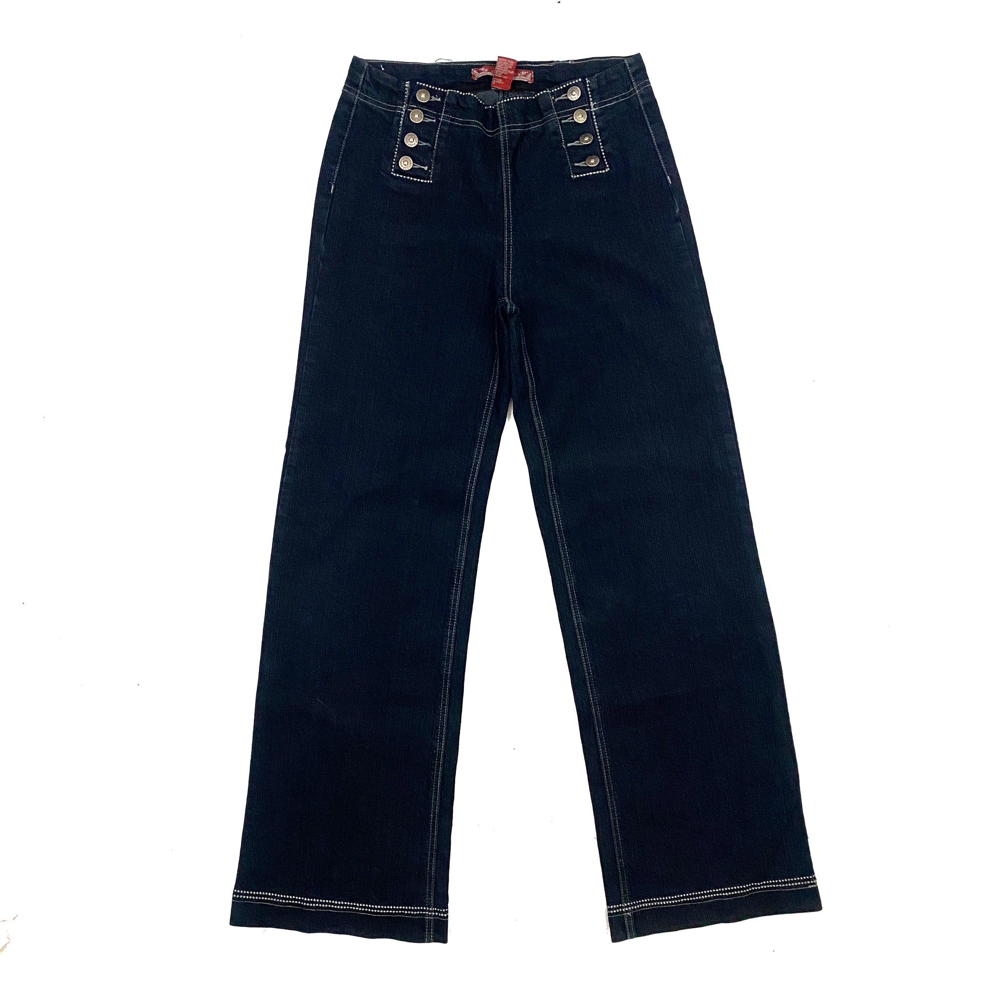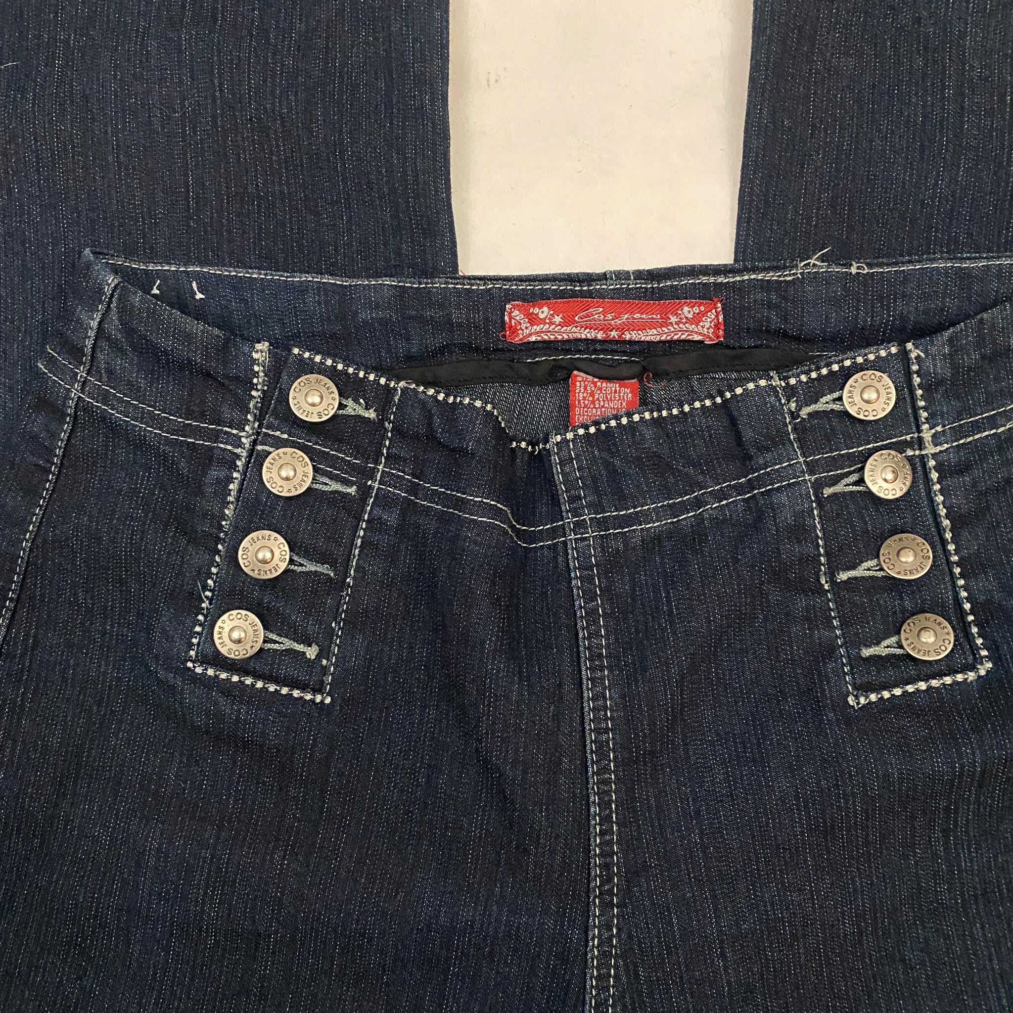 y2k cos double button wide leg trouser jeans. mid rise. have a decent amount of stretch