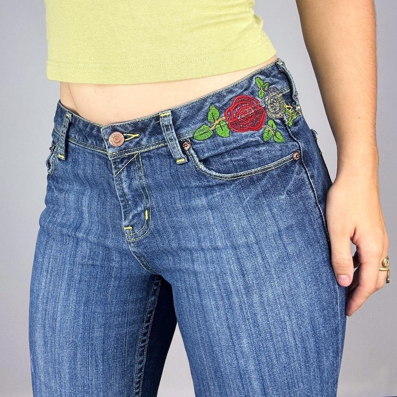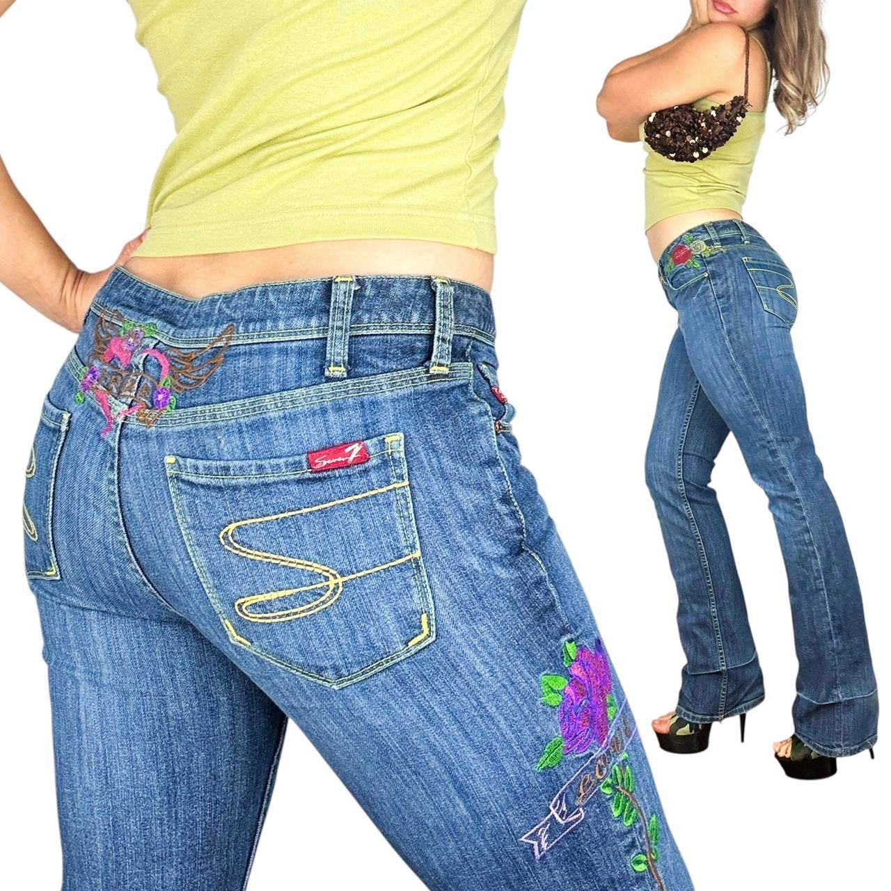 Vintage “Seven” jeans from the early 2000s. Super cute embroidery throughout. Great pre-loved condition; minor fading at the hem.