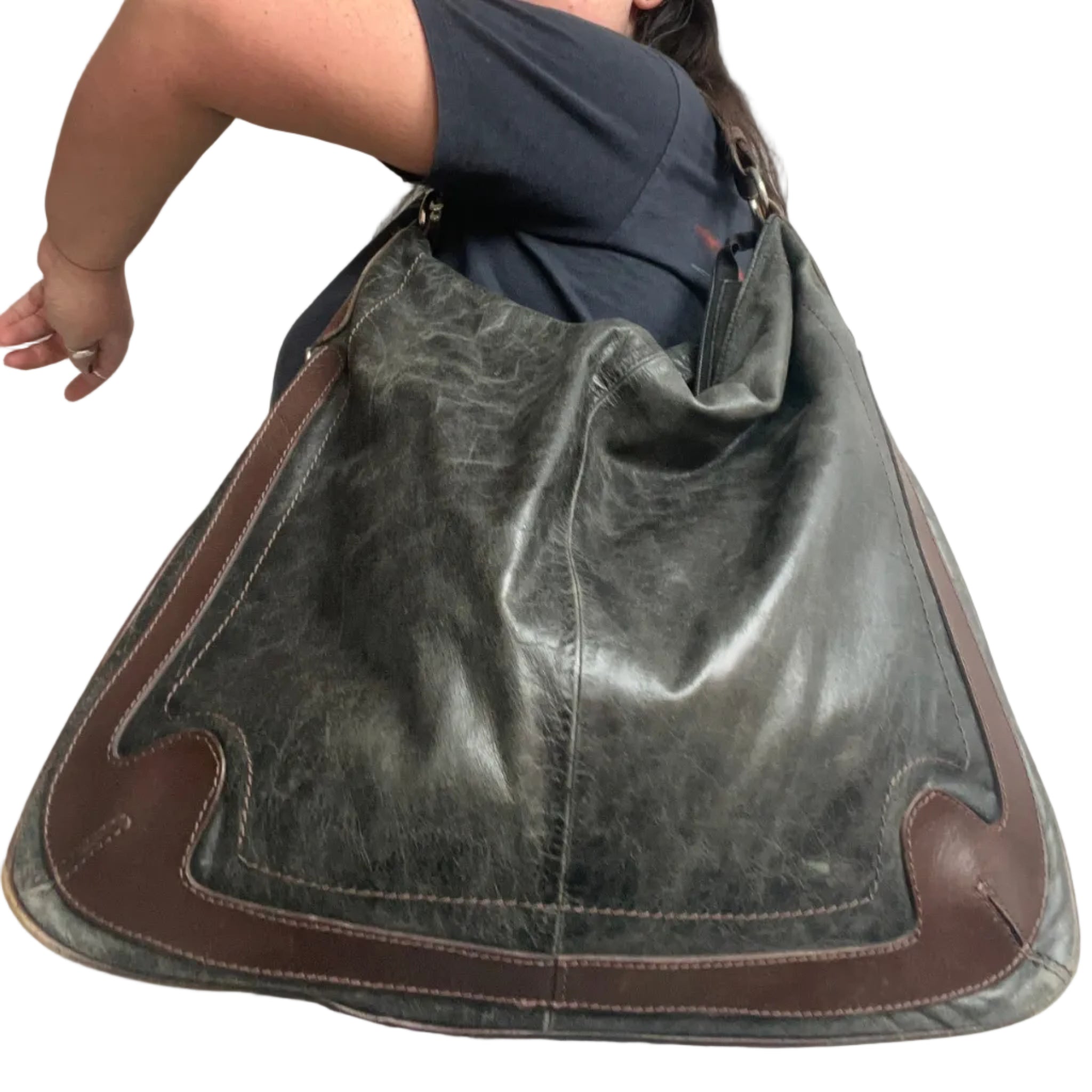 Y2K Genuine Leather Slouchy Hobo Shoulder Bag