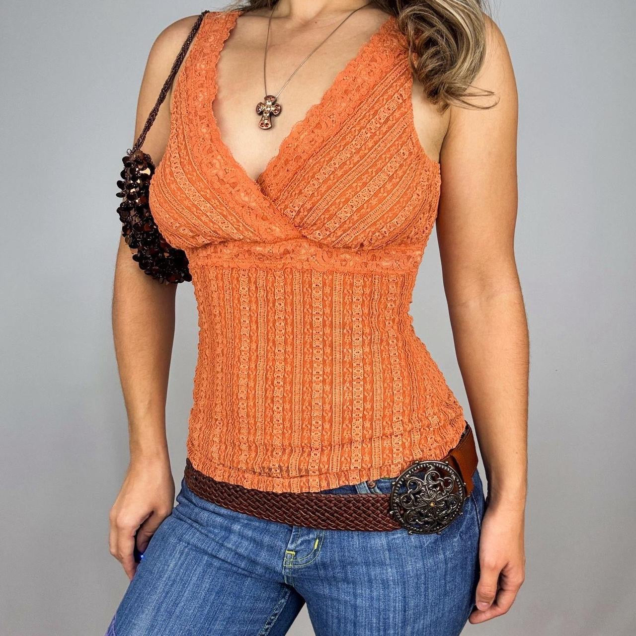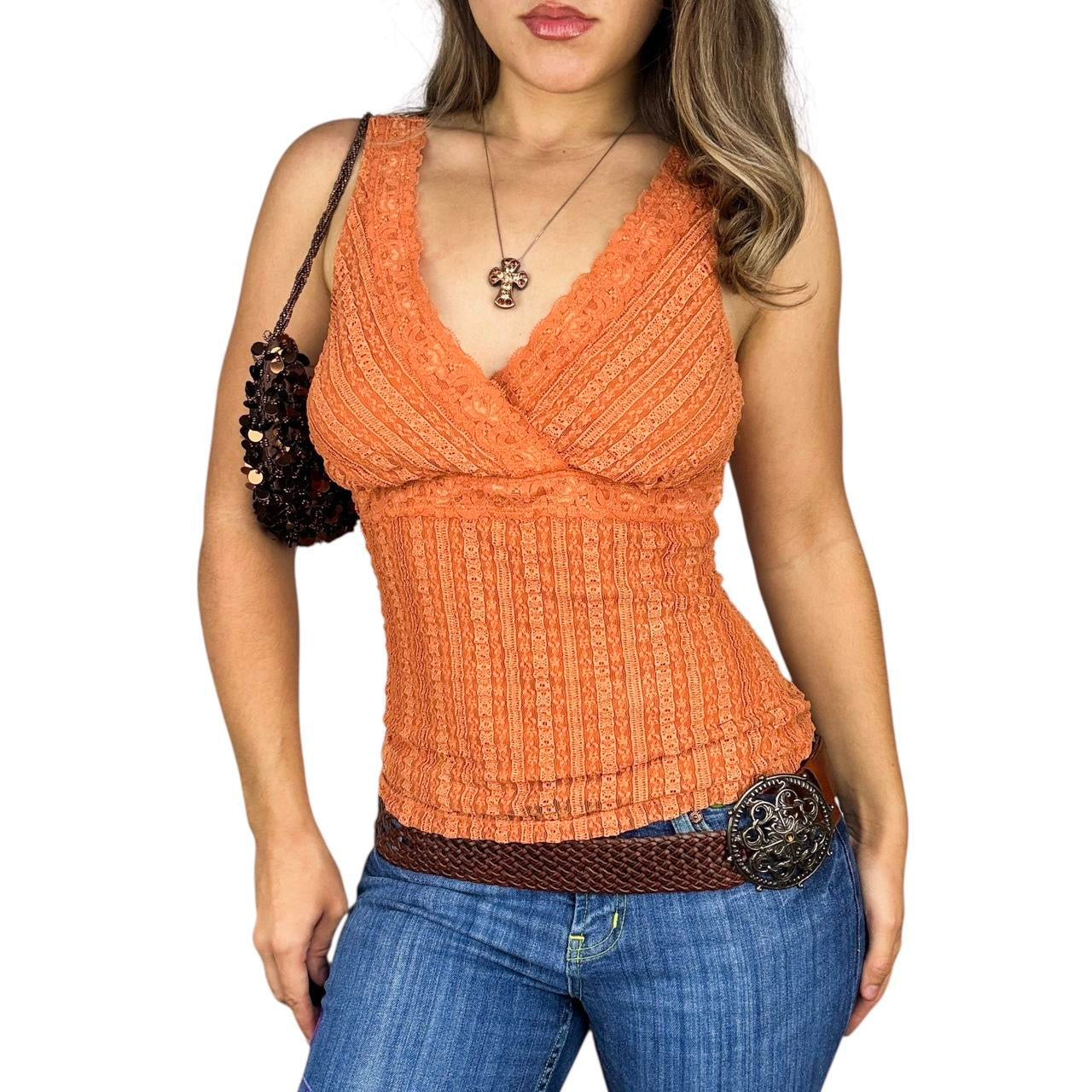 Y2K Orange Lace Surplice Top (M)