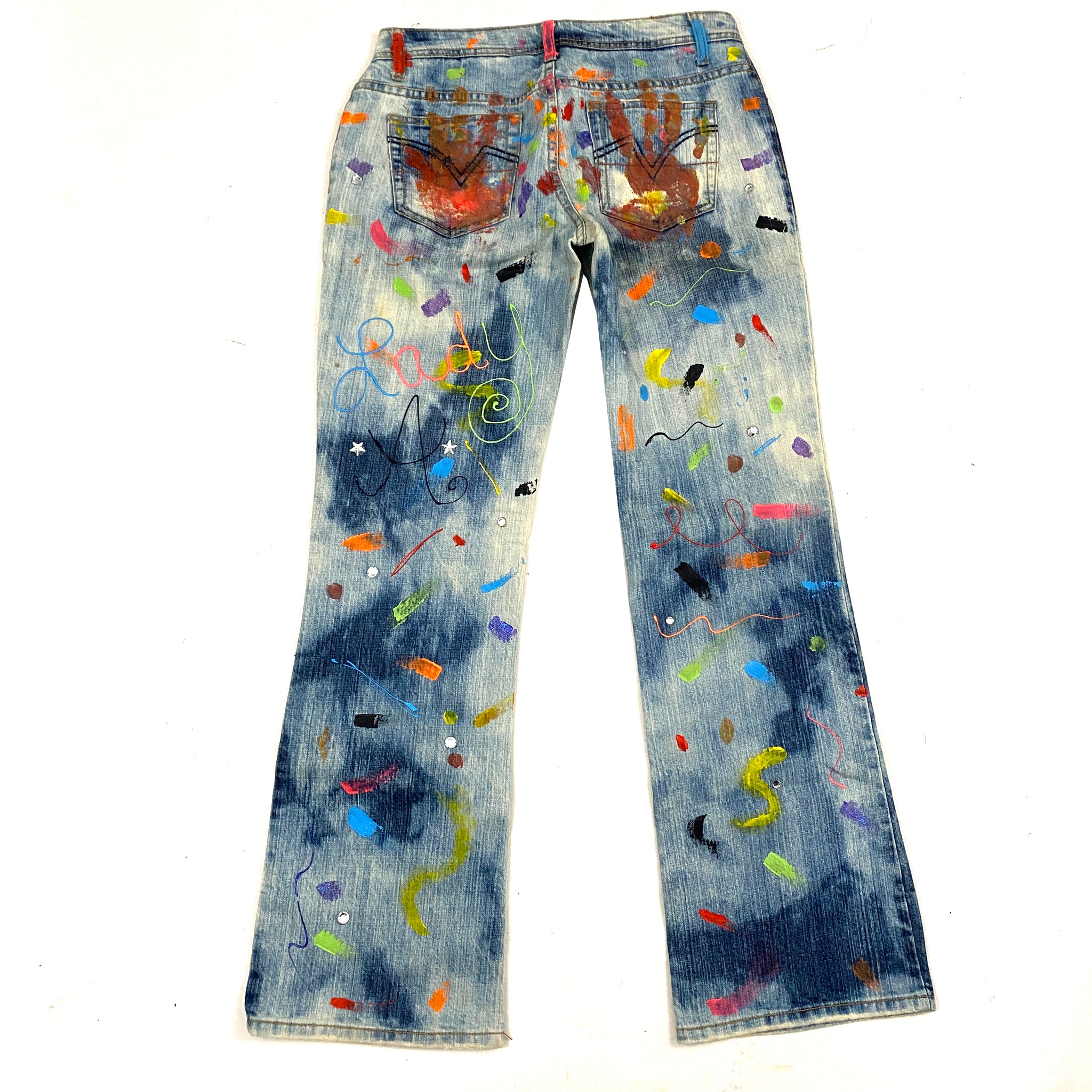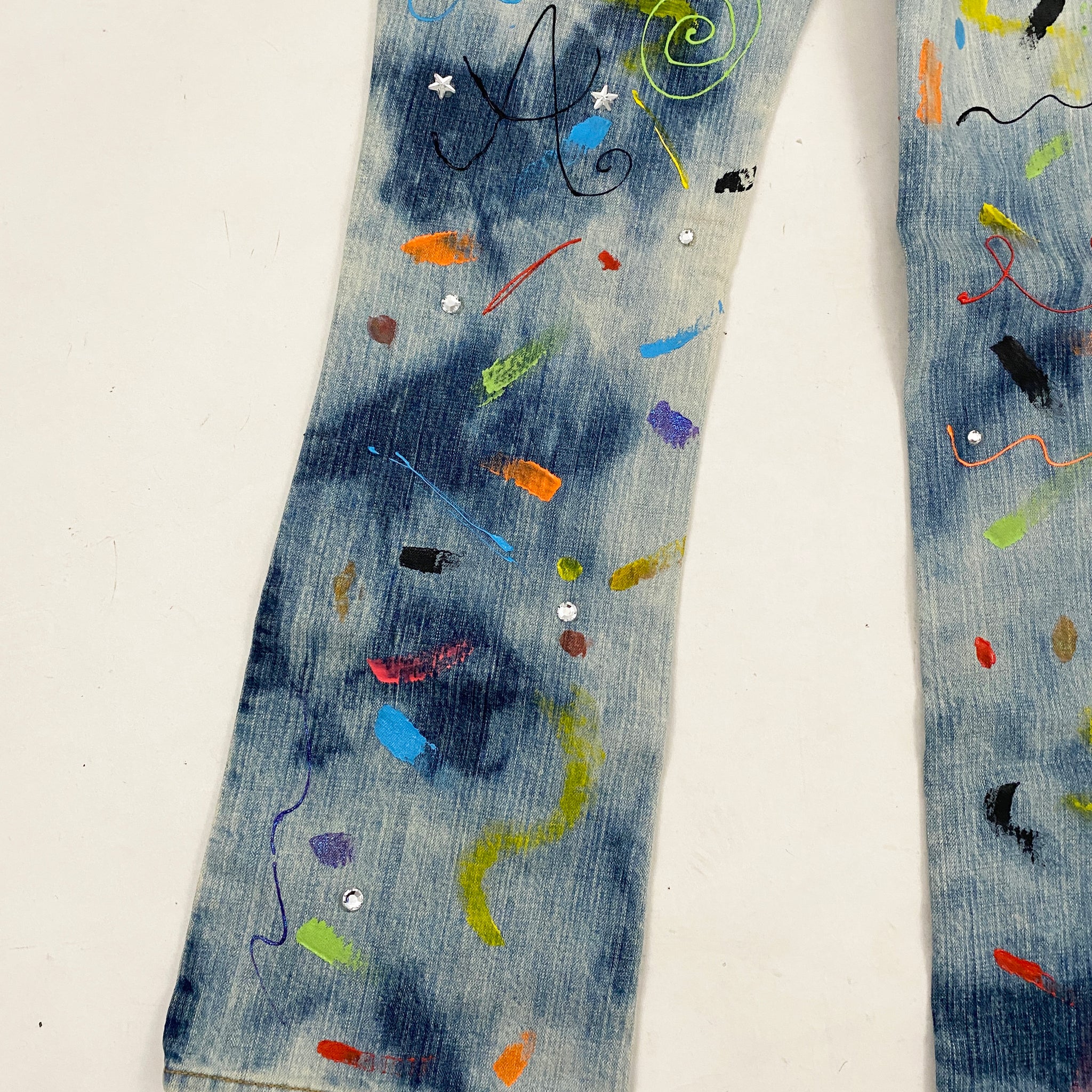 super funky 2000s r4r graffiti jeans. sits between a low and mid-rise
