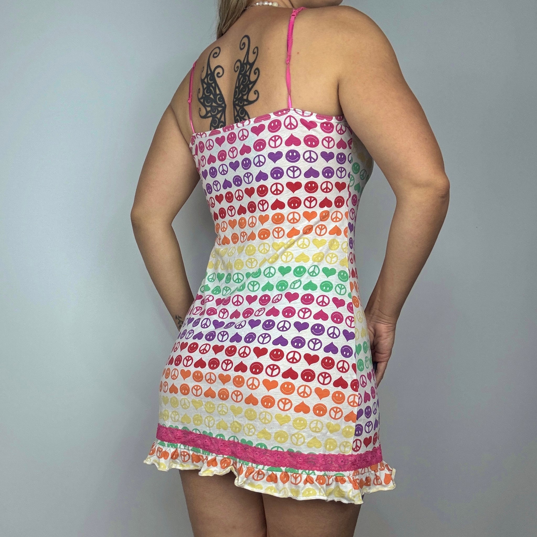 Y2K Rainbow Emoticon Slip Dress (M)