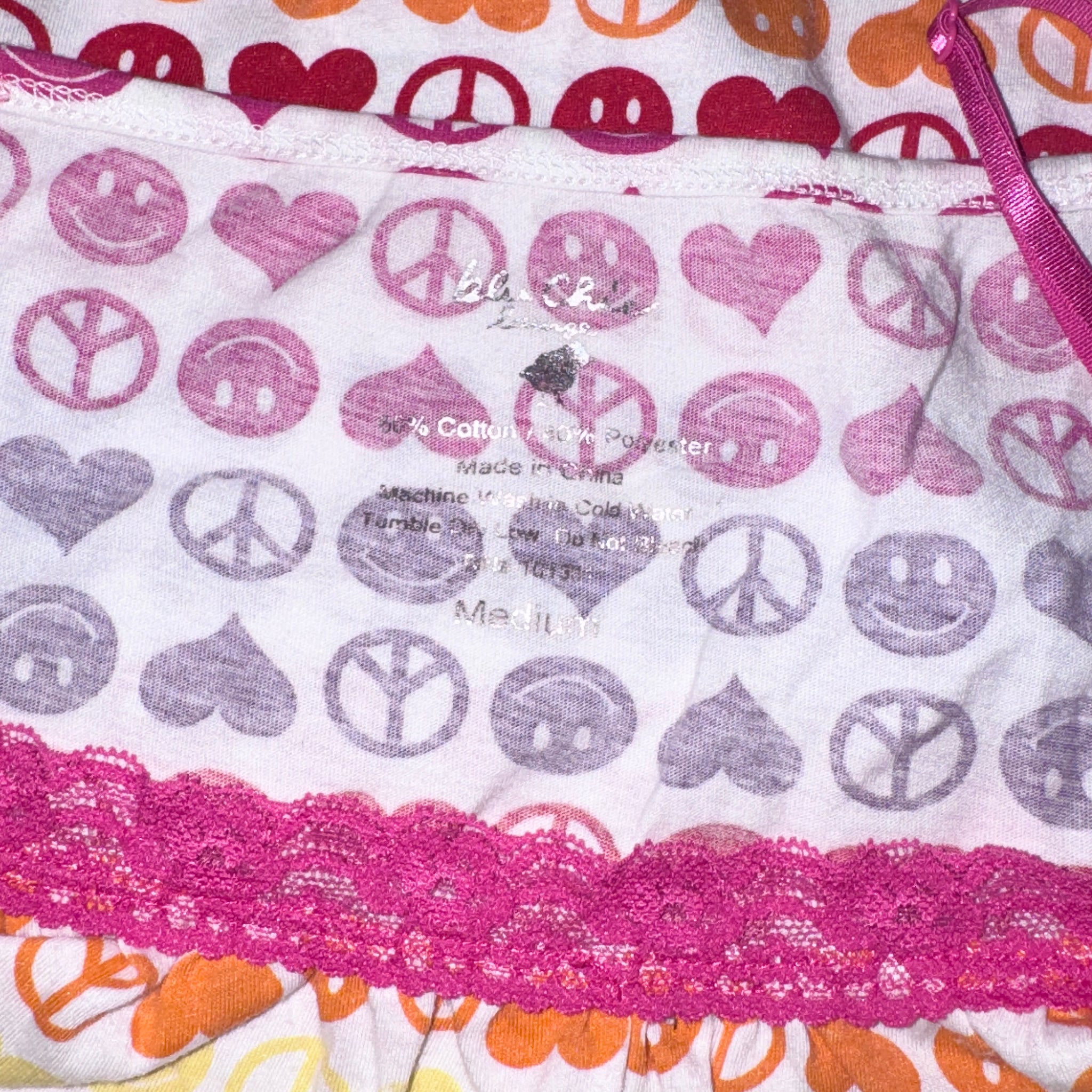 • adorable smiley face, peace sign, & heart print slip with a colorful gradient